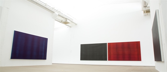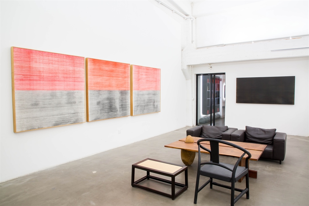 In 2013, Gu Xiaoping began the creation of the series "Ink Lines in Motion". He uses chalk line made by traditional Chinese woodware to draw regularly and repeatedly balanced ink lines on rice paper, cloth, etc., strictly following the standard and precise labor method. These ink lines extend infinitely in the longitudinal or lateral direction without limit, forming images of "ink lines" that are densely or sparsely spaced or even stacked to black. This kind of laborious and repetitive process of manual labor and visual complex effects form a seemingly different image of each other and transform them into art. It is a personal feeling about the real-life survival and real attributes, a challenge, subversion and melt of the painting art itself and an attempt at his daily ‘Sādhanā’.