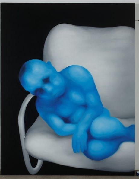 Zhao Nengzhi’s serie “Blue”, maintain the structures and elements of his earlier works, the body and expressions became the carrier of the artist’s creations, work such as the “Big head”, or the half man figures, Zhao Nengzhi always using the exaggerated and transformation of focus to show his works to us, also emphasizing the characteristics of the partial figures. The partial features of his works are just a kind of media, which arrange the massive chaos into a combination of everything. Whether it might be judged as twisted, terrifying, painful, stressful, or blind, we cannot denied that those expressions shown were the same characteristics we all shared as a human been. The artists showed our “true” conditions through this form of violent creation.
